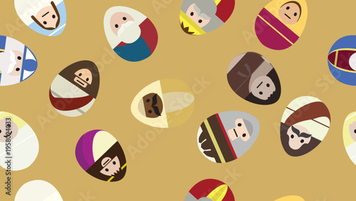 © bullet_chained, Naklejka premium Easter Egg Bible Characters Seamless Pattern Banner