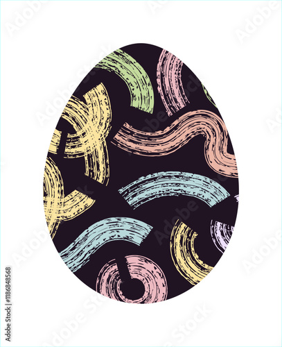 © Анастасия Красавина, Naklejka premium Easter egg, Easter day festival icon, ostern egg illustration with decoration pattern squiggle trxtured brush symbols collection, vector illustration.