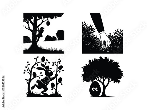 Fototapeta premium Easter Egg Hunt Silhouettes | Kids & Bunny Festive Clip art
