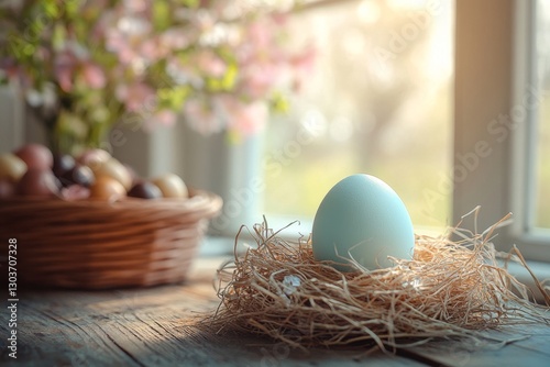 © Watcher, Obraz premium Easter Egg in Nest by Window