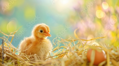 Obraz premium Easter egg on a Chick themed postcard card icon with symbolic background
