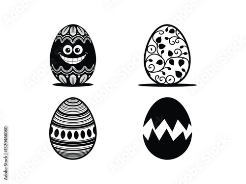 Fototapeta premium Easter Egg Silhouette Collection – Black and White Decorative Eggs for...
