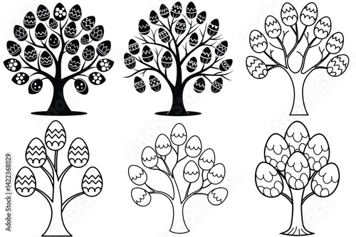 Obraz premium Easter Egg tree silhouette vector illustration isolated on white background.