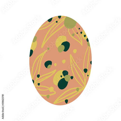 Obraz premium Easter egg with a pattern on isolated white background. Delicate, cute color palette. Happy easter. Greeting card design element and more. Digital hand drawing illustration. Stock vector illustration