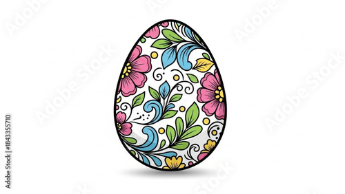 Fototapeta premium Easter Egg with Colorful Floral Pattern on White Background