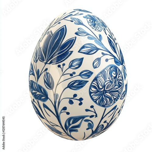 Fototapeta premium Easter egg with high-gloss ceramic and intricate blue patterns isolated on...