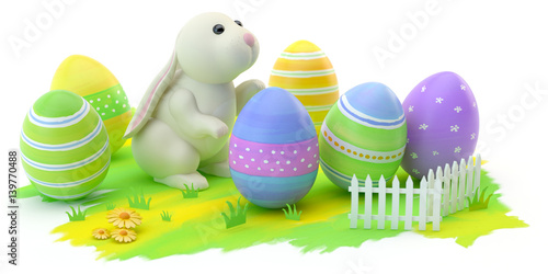 Naklejka premium Easter eggs and bunny