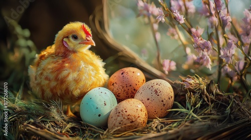 Obraz premium easter eggs and chicken