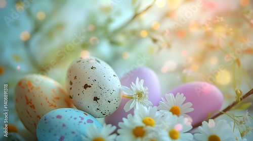 © slonme, Fototapeta premium Easter Eggs and Daisies