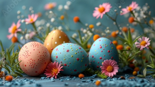 Fototapeta premium Easter Eggs And Flowers