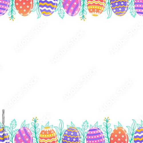 Fototapeta premium Easter eggs and leaves are forming decorative frame in flat design...