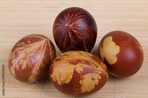 © Nenad, Obraz premium Easter eggs background. Artistically painted Easter eggs