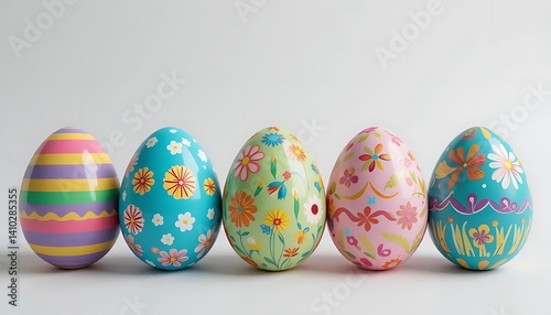 Fototapeta premium Easter eggs, colorful, decorated, vibrant patterns, stripes, polka dots, floral designs