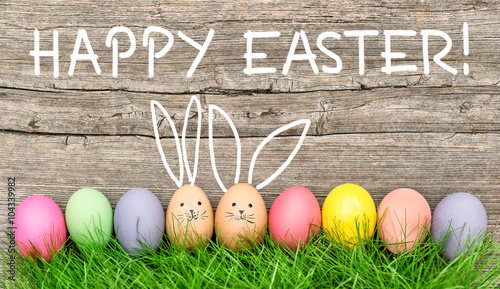 © LiliGraphie, Fototapeta premium Easter eggs cute bunny. Funny decoration Happy Easter