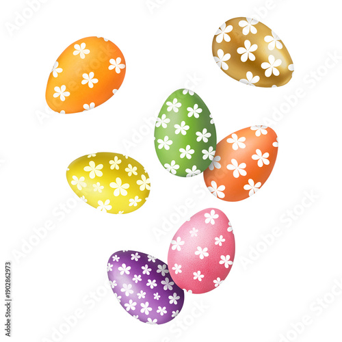 Obraz premium Easter eggs decorated for holiday falling on white background