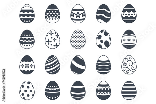 Fototapeta premium Easter eggs, Easter day festival icon set, ostern egg icons with decoration patterns symbols collection, logo isolated vector illustration