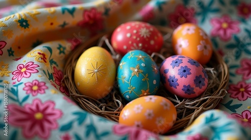 © X, Fototapeta premium easter eggs in a basket