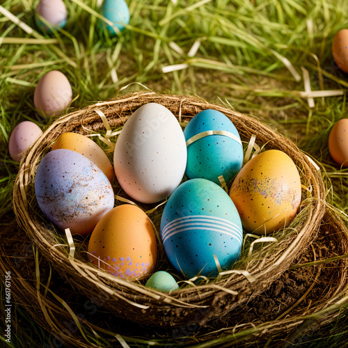 © Nuttawoot, Fototapeta premium easter eggs in a nest