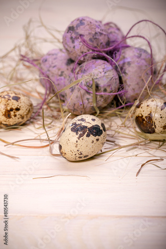 Obraz premium Easter eggs in a nest from a dry grass