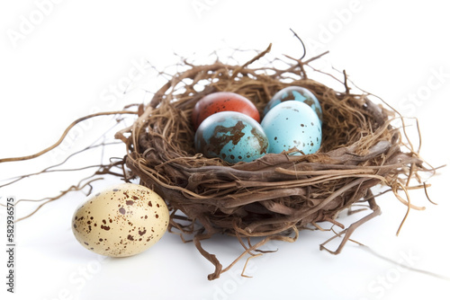 © pa-ka, Obraz premium easter eggs in a nest. generative ai