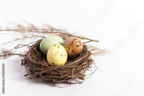 © pa-ka, Obraz premium easter eggs in a nest. generative ai