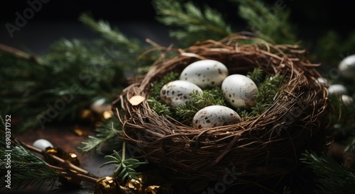 Fototapeta premium easter eggs in a nest on dark background