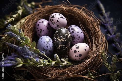 Obraz premium easter eggs in a nest with lavender