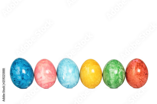 © Vaceslav Romanov, Obraz premium Easter eggs in a row isolated on white background