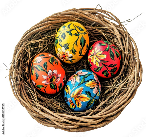 © PNG Land, Obraz premium easter eggs in basket isolated on transparent background