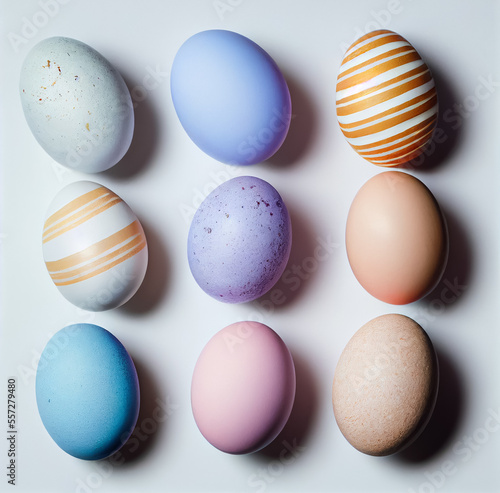 © Dav_782, Obraz premium Easter eggs in different colors with hand-drawn patterns.