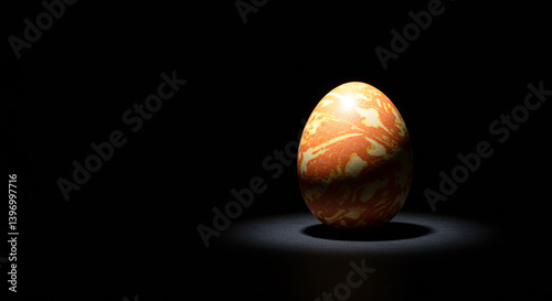 Fototapeta premium Easter Eggs in Studio Product Shot Style, Single marbled Easter egg illuminated in a dark studio environment