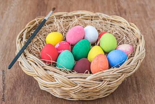 © kwanchaift, Fototapeta premium Easter eggs in the nest