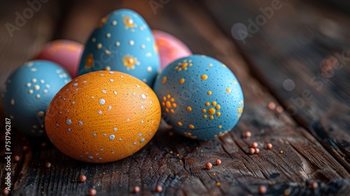 © jul14ka, Obraz premium Easter eggs on a wooden background