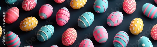 © kramynina, Fototapeta premium Easter eggs on blue background . Banner