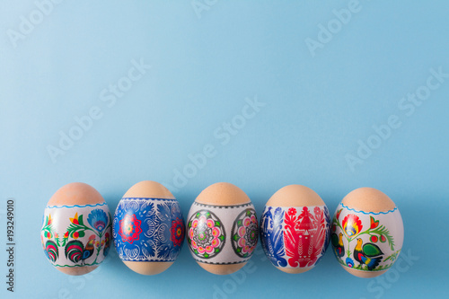 © marekbidzinski, Fototapeta premium easter eggs on blue background with copy space