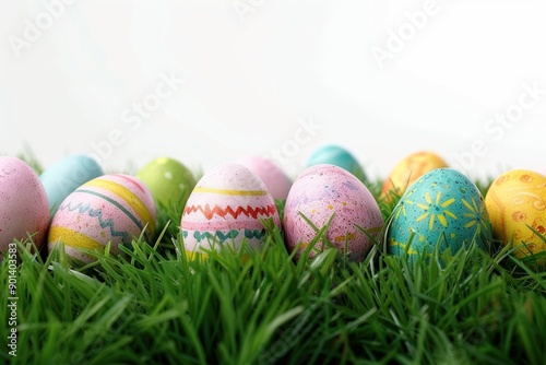 Fototapeta premium Easter eggs on the grass, isolated on a white background. Easter concept