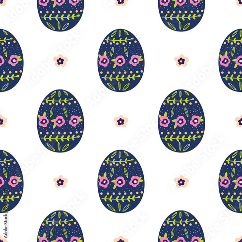 Fototapeta premium Easter eggs seamless pattern vector illustrations. Different floral...
