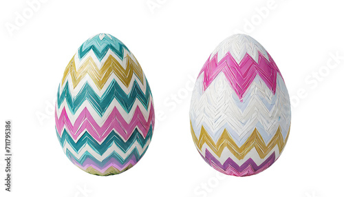 Fototapeta premium Easter eggs with colorful geometric pattern on transparent background.