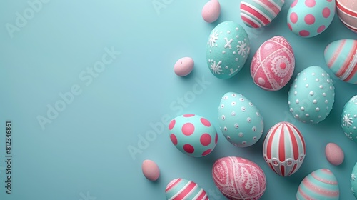 © Picza Booth, Fototapeta premium Easter Eggs with Dots and Stripes on Blue Background