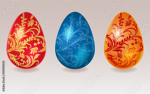 Fototapeta premium Easter eggs with floral ornament in 3 colors.