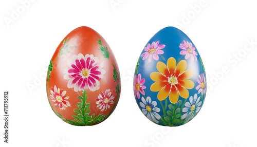 Fototapeta premium Easter eggs with flowers. Isolated on a transparent background.