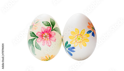 © shabbir, Fototapeta premium Easter eggs with flowers. Isolated on a transparent background.