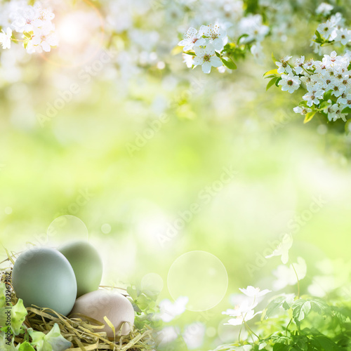 Naklejka premium Easter eggs with spring blossoms