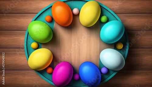 Obraz premium Easter eggs wooden tray , Generative AI