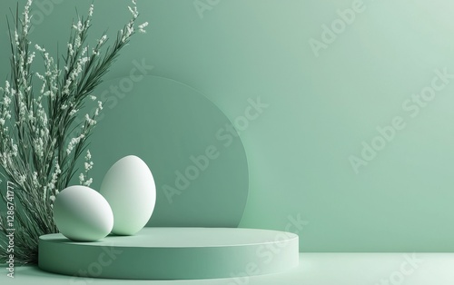 © Marina, Fototapeta premium Easter Emerald Green 3d background minimalistic mockup with space for text