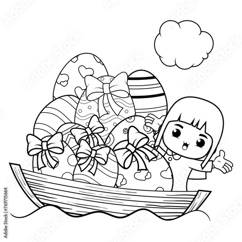 Fototapeta premium Easter Girl Coloring Page For Kids