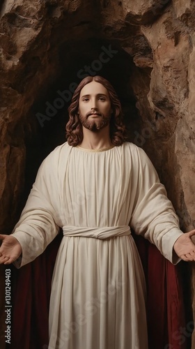 © ahmed, Naklejka premium Easter Holiday, Easter Concept, Serene Statue of Jesus Christ in Cave Setting Religious Art Spiritual Image