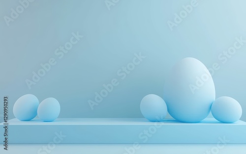 © Антон Федченко, Fototapeta premium Easter Ice Blue 3d background minimalistic mockup with space for text