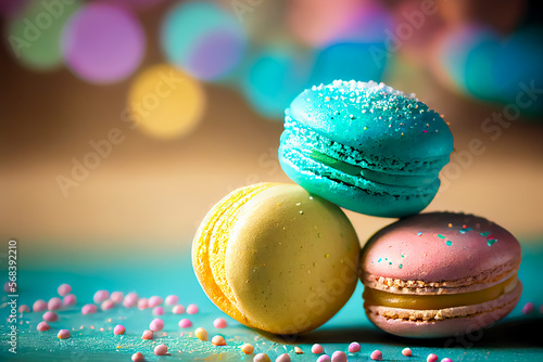© nadunprabodana, Obraz premium Easter Macaroons. Generative AI