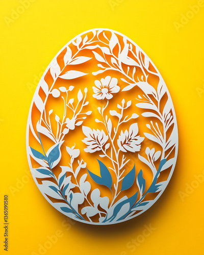 © Iryna, Fototapeta premium Easter paper cut card with eggs